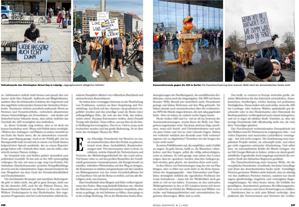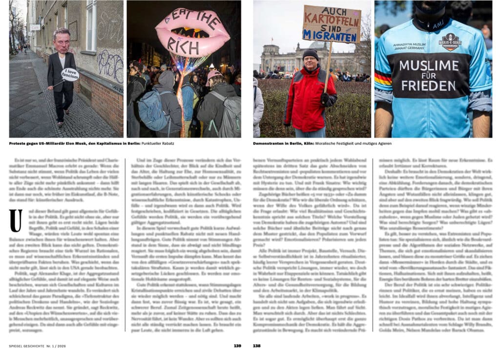 Ein weiterer Artikel zeigt mehrere Aufnahmen von Demonstrierenden in Deutschland von Michael Danner/laif.
